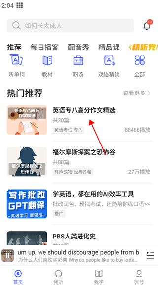 软件内整合了涵盖多种主流英语考试的备考资料、系列经典教材以及按兴趣分类的泛听材料,能够满足不同阶段与目标用户的学习内容需求。