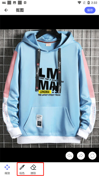 4、可以采用吸色或擦除扣图,扣完图点击上方保存即可