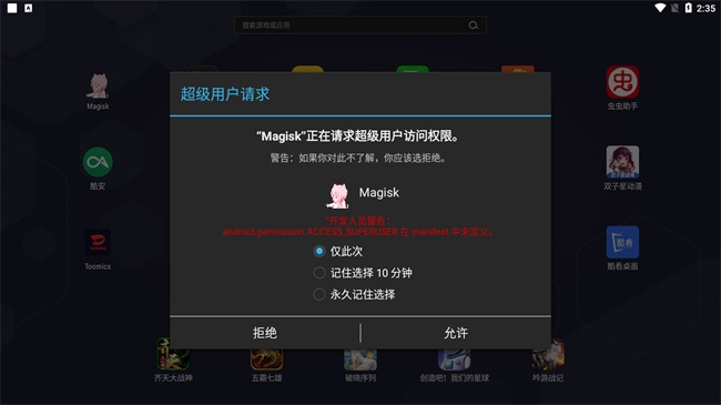 2、可以为设备授予完整的Root权限,以便执行高级开发者操作,并具备针对特定应用隐藏Root状态的能力,有效应对部分程序的权限检测机制。