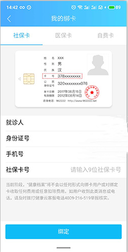3、你可以选择绑定社保卡、医保卡以及自费卡。