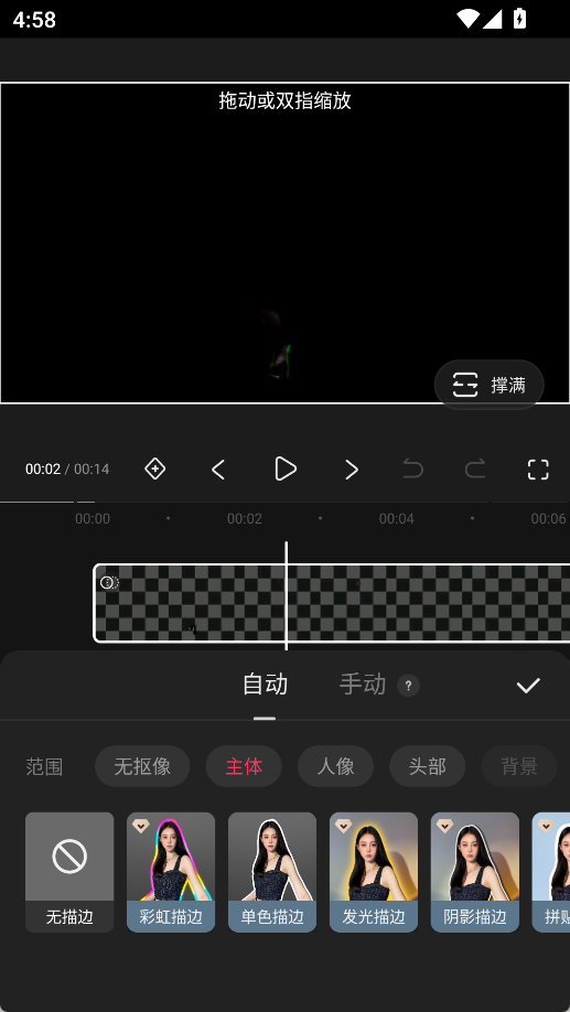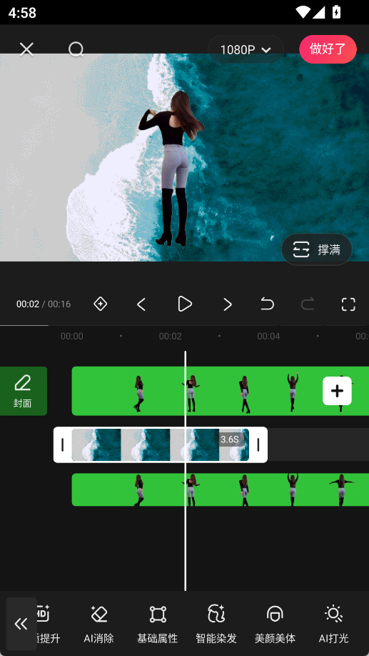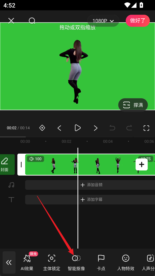 3、字幕滤镜美颜全都有,背景画中画加智能抠像,轻松做出精美视频。