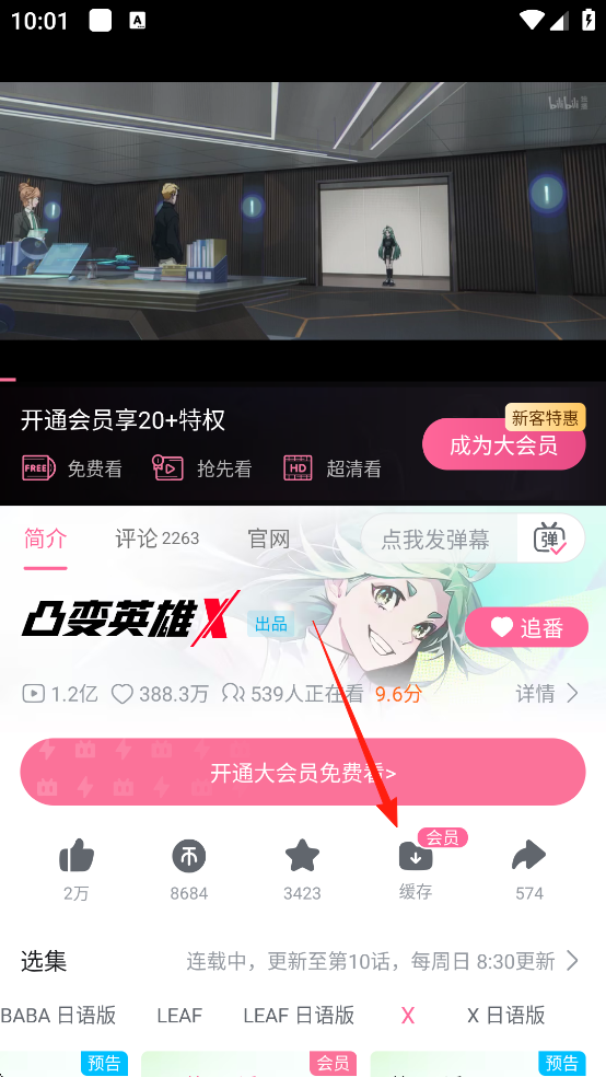 2、在动画观看界面中点击下方缓存按键