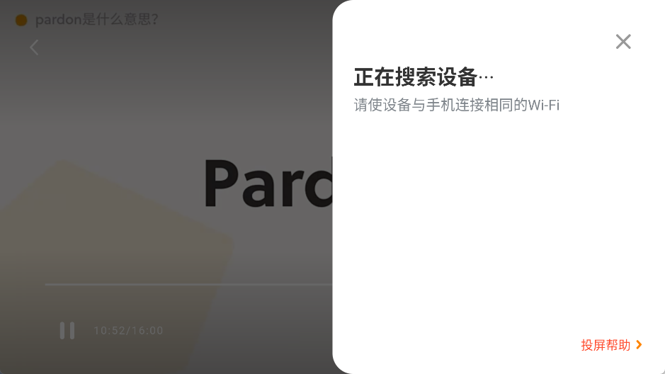 5、等待App识别附近电视设备,连接成功即可将课程内容投屏到电视上观看。
