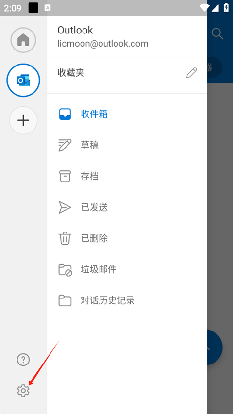 1、打开微软邮箱App,点击左上角Outlook邮箱图标;