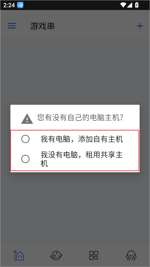 1、打开游戏串App后,点击右上角的“+”图标进入添加界面。