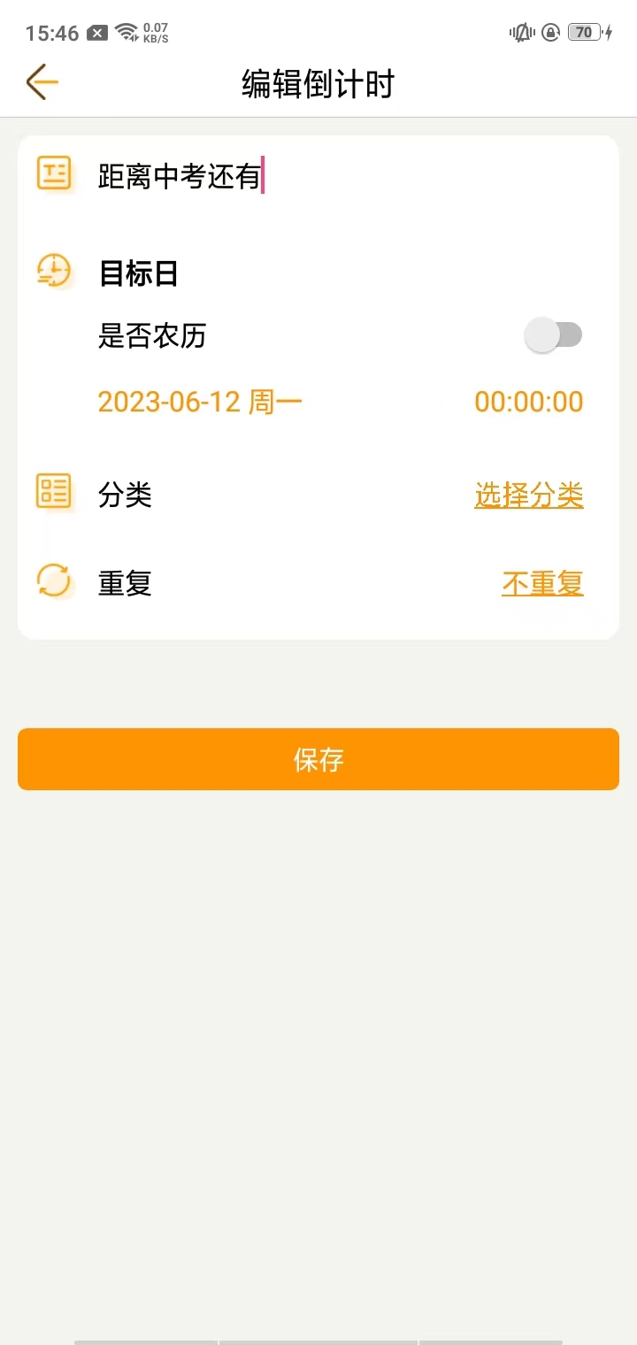 2、点击上图时间那里,就可以进行设置;如果是高考的话就可以改成“距离高考还有”;然后再修改时间,点击下方的保存就可以;