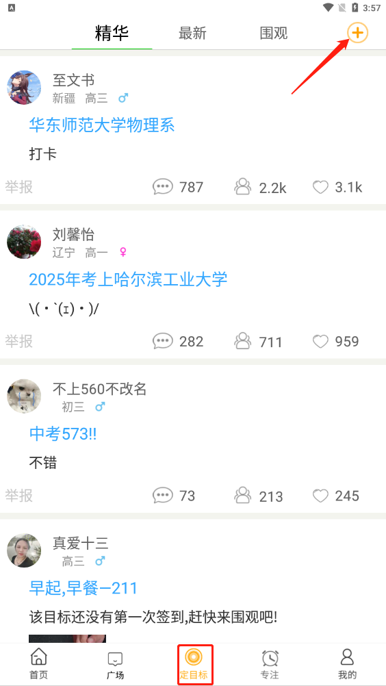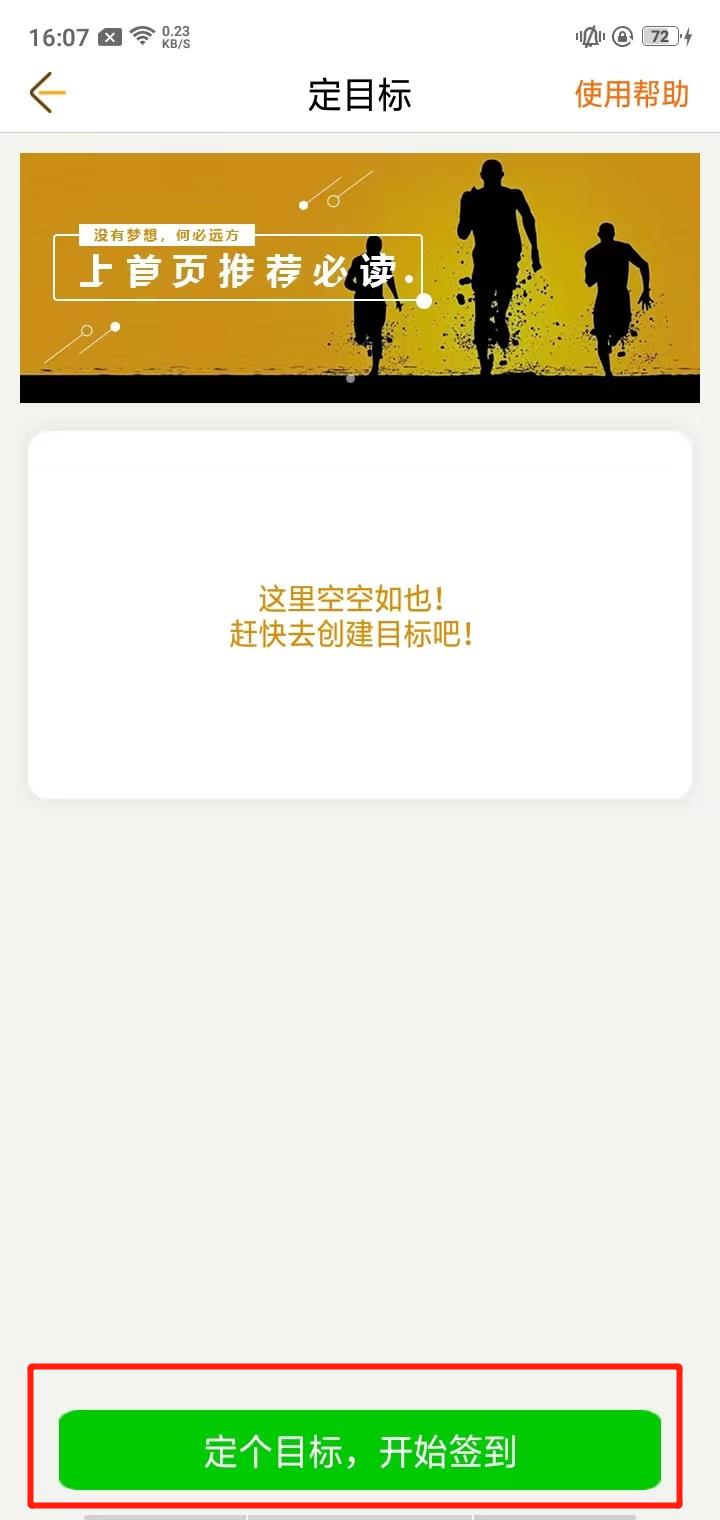 1、首先我们先添加一个目标,点击下方功能栏【定目标】,然后点击右上方的加号按钮,接着点击下方的绿色按钮;