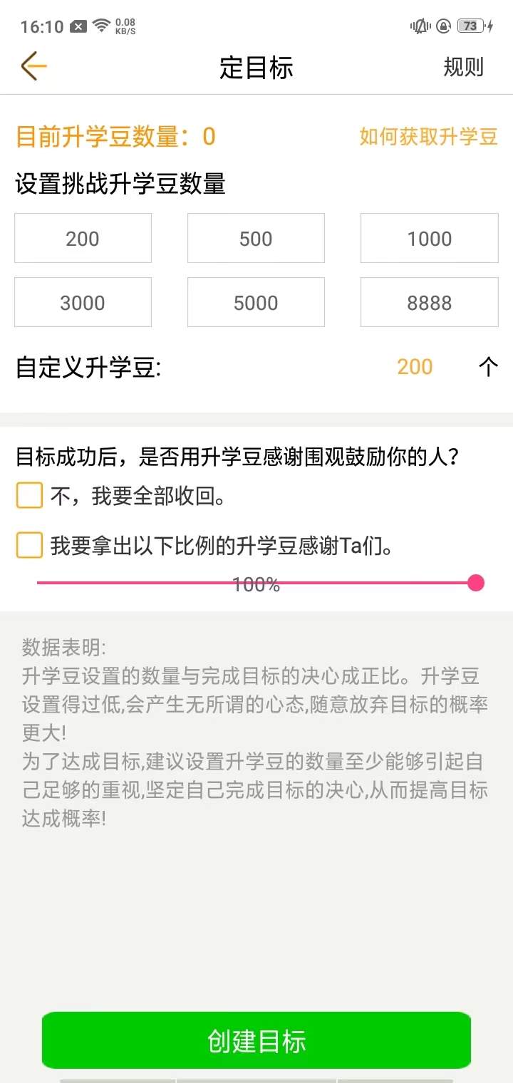 5、接着设置挑战升学豆数量以及勾选下方的任意一项,之后就可以创建目标了。