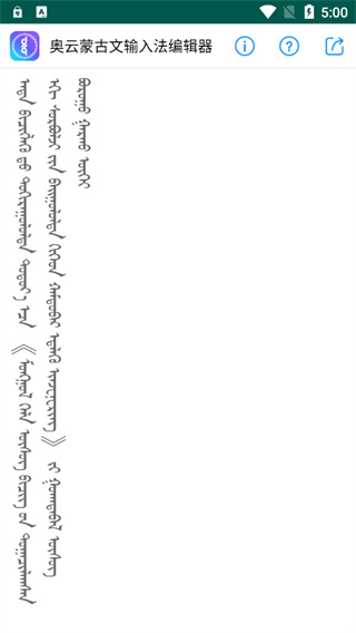 奥云输入法手机版是属于一款关于蒙古文的输入法,要知道中国是五十六个民族,尽管汉族的汉文字比较普遍,但是少数民族的文字也是需要尊重的,因此蒙古文就是其中一种,在使用蒙古文的少数民族输入法就得有蒙古文才可以,因此奥云输入法手机版是可以满足到需求的,软件使用起来很方便,只需要输入文字就可以转变成为蒙古文,感兴趣的朋友可以下载奥云输入法手机版。