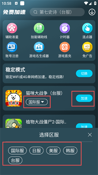 2、这上面可以看到你手机上的游戏点击加速【有一些游戏会有特别的服比如:国际服、美服等等】