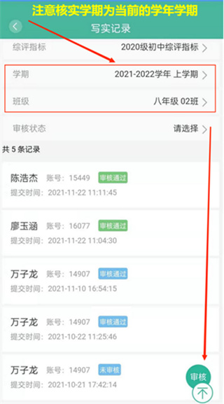 1、审核学生提交的写实记录