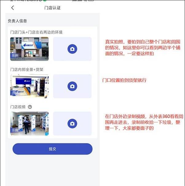 7、进入【门店认证】界面,根据要求上传相应的视频后,选择【提交】选项,