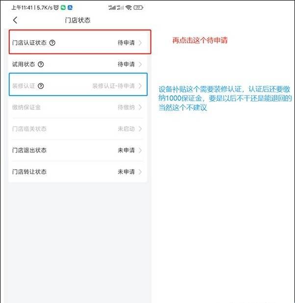 6、进入【门店状态】界面,选择【待申请】选项,