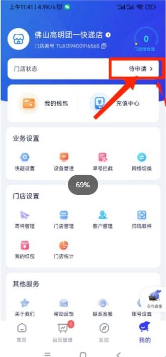 5、接着我们在【我的】界面门店状态,选择【待申请】选项,