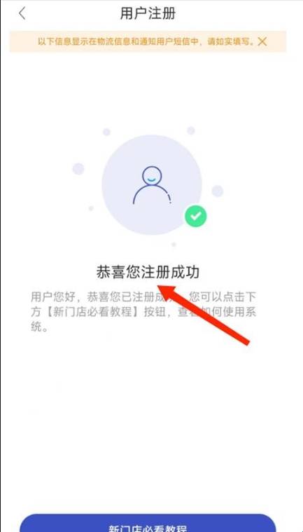 4、如图,提示【恭喜您注册】成功,代表开店账号已注册完成,