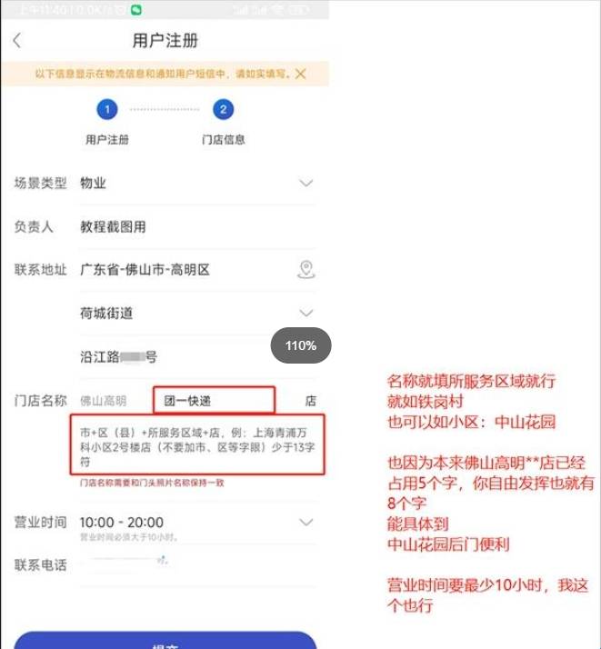 3、进入【门店信息】界面,依次填写【场景类型】、【负责人】、【联系地址】、【门店名称】、【营业时间】和【联系电话】,最后选择【提交】选项,