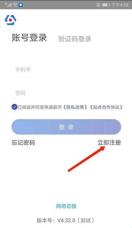 1、打开兔喜快递超市app,进入应用登录界面,选择【立即注册】选项,