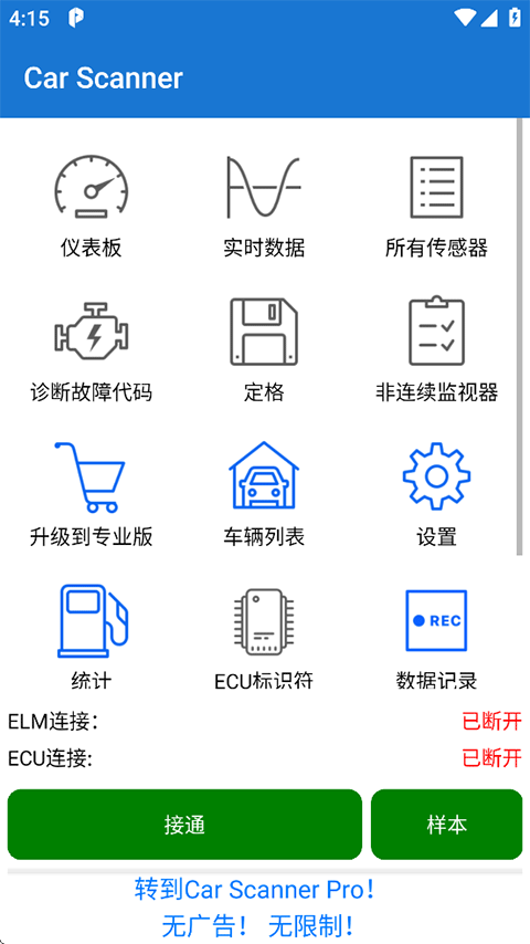 2、Car Scanner 需要一个基于ELM327芯片的OBD2适配器才能运行。