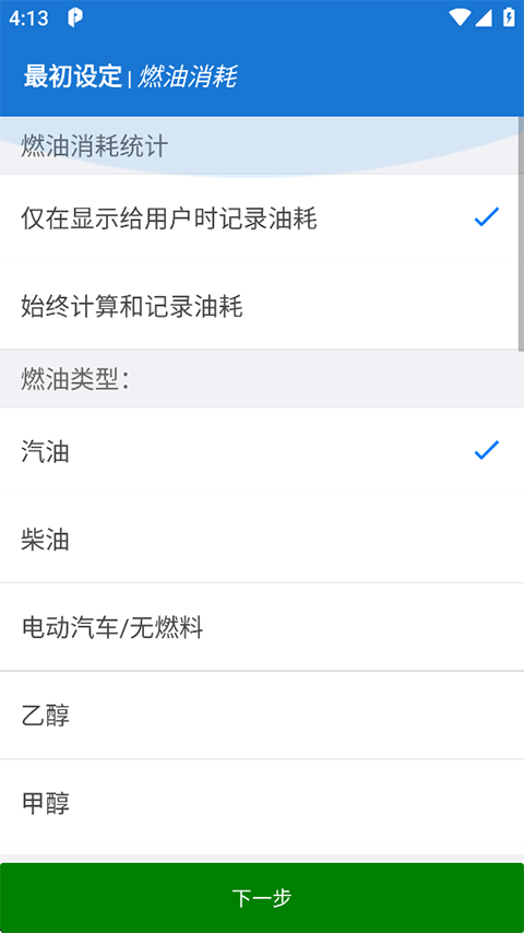 4、设置最初设定,速度、距离单位、容量等,继续下一步;