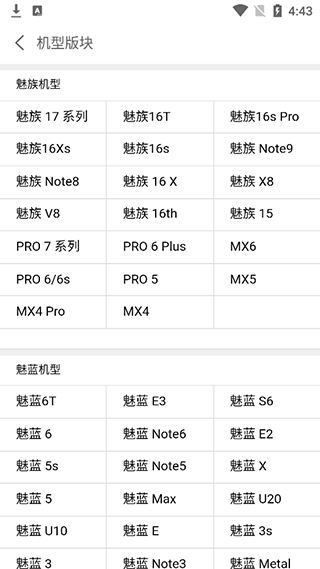 3、返回主界面,点击机型,显示有关魅族所有机型;