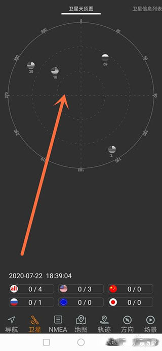 2、进入主界面后,点击最下方的【卫星】功能进入。如下图所示