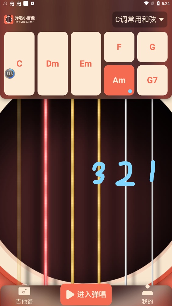 3、智能吉他谱,帮你学习吉他弹唱一首歌,从上手弹奏练习到熟练。
