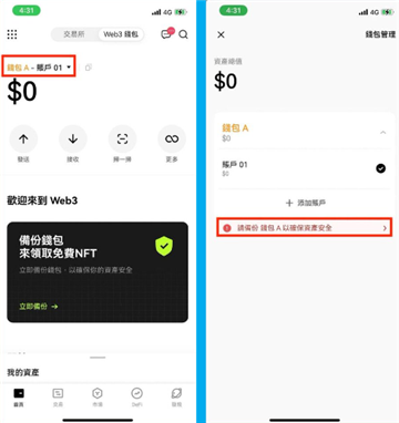 备份后就可以开始入金OKX Web3 钱包了。