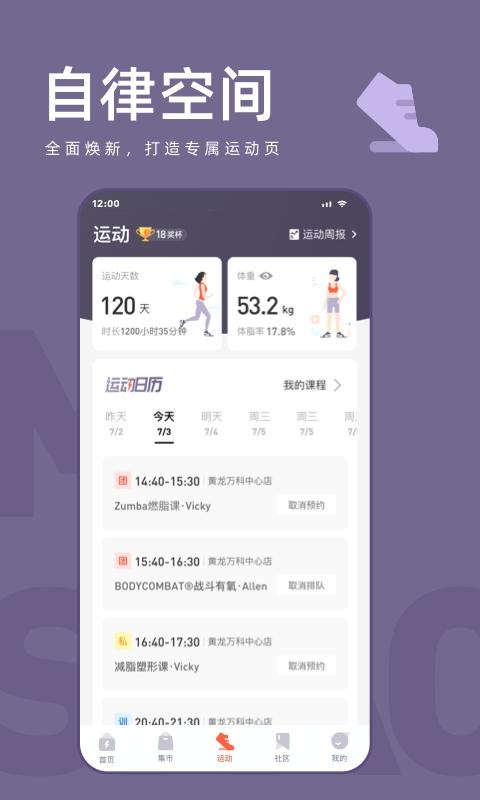 1、全新设计的界面融入了更多智能元素,用户可以方便地预约课程、管理健身计划,获得更好的健身体验。