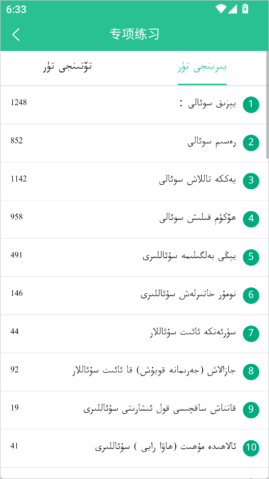1、打开维语驾考App,首先需要设置语言和考试的科目