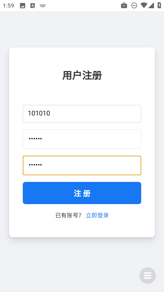 2、接着输入账号,密码,再次输入密码,点击【注册】。