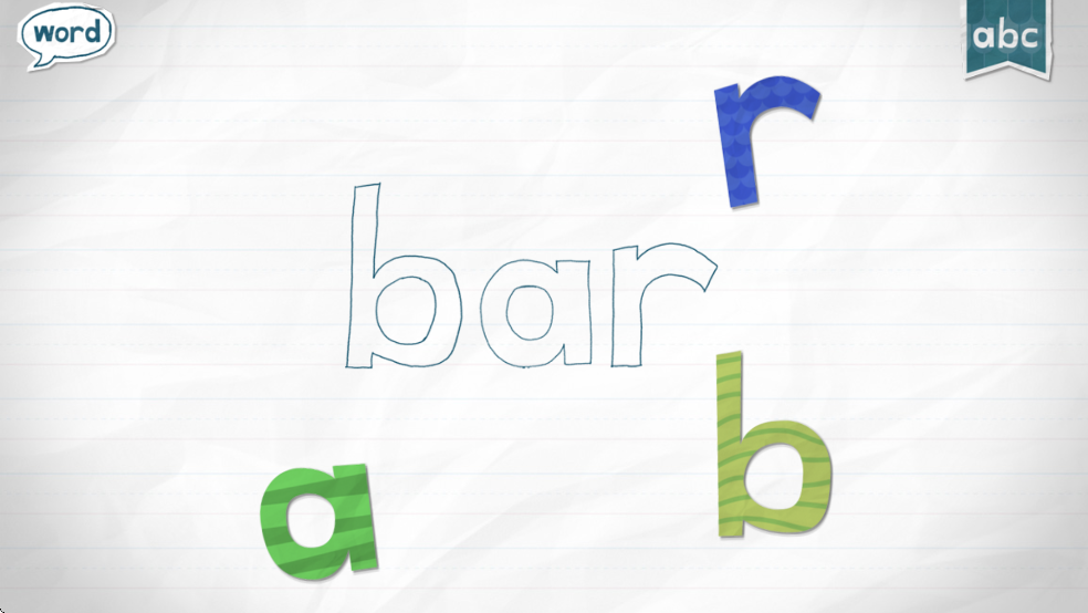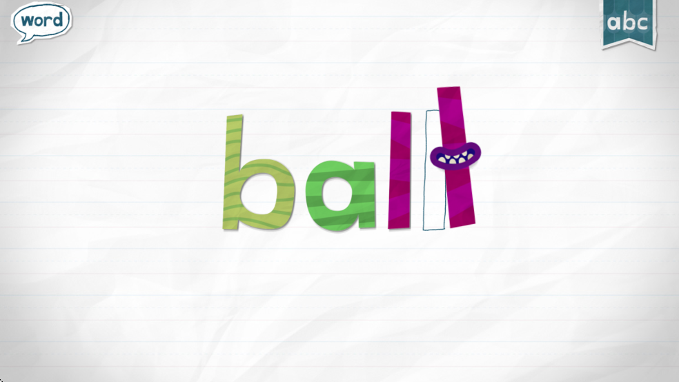 2、孩子拖动字母到正确位置时,字母会变成活泼的小动物并发出读音,拼写完成后单词会做鬼脸,强化记忆。