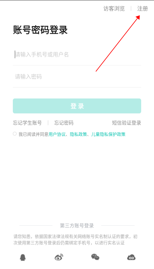 2、接着,点击右上角的【注册】。