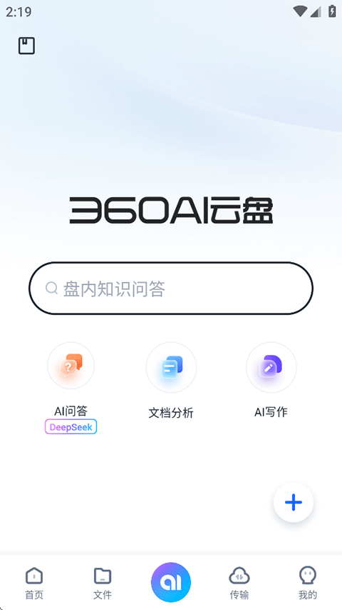 1、打开360AI云盘,在首页的常用工具下APP提供了文档扫描、相册备份、文件夹备份等功能;