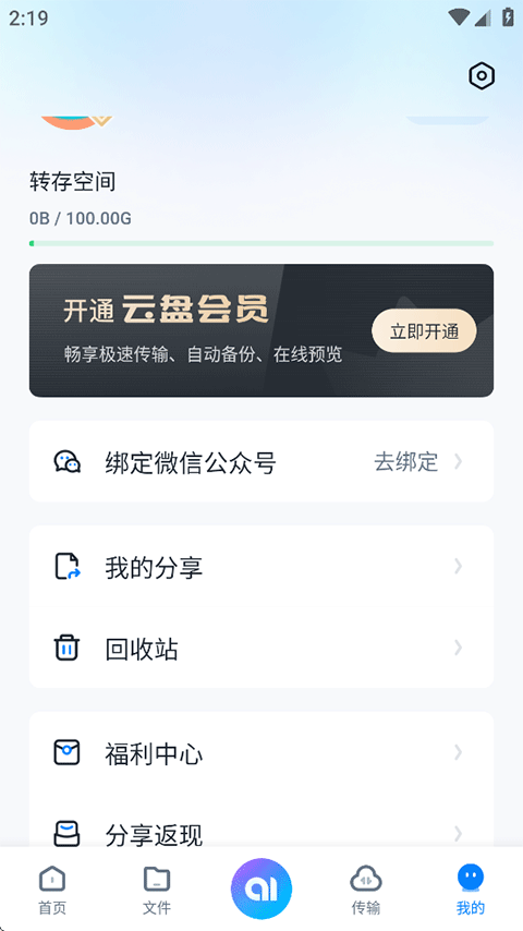 4、登录账号后可以享受100G云盘存储空间,还有更多特色功能服务。